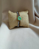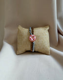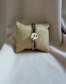 Double elastic bracelet with crystals and stained glass donut-shaped charm