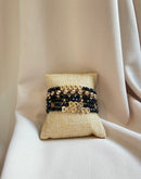Set of 6 elastic bracelets, made of crystal, hearts in natural hematite stone, and beads plated in 18 karat gold