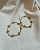 Elastic star bracelet, 6.69 inches, stars in natural steel stone and 18 Karat gold-plated beads