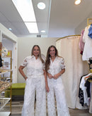 Two-piece beige lace set. Lined. Has pockets.