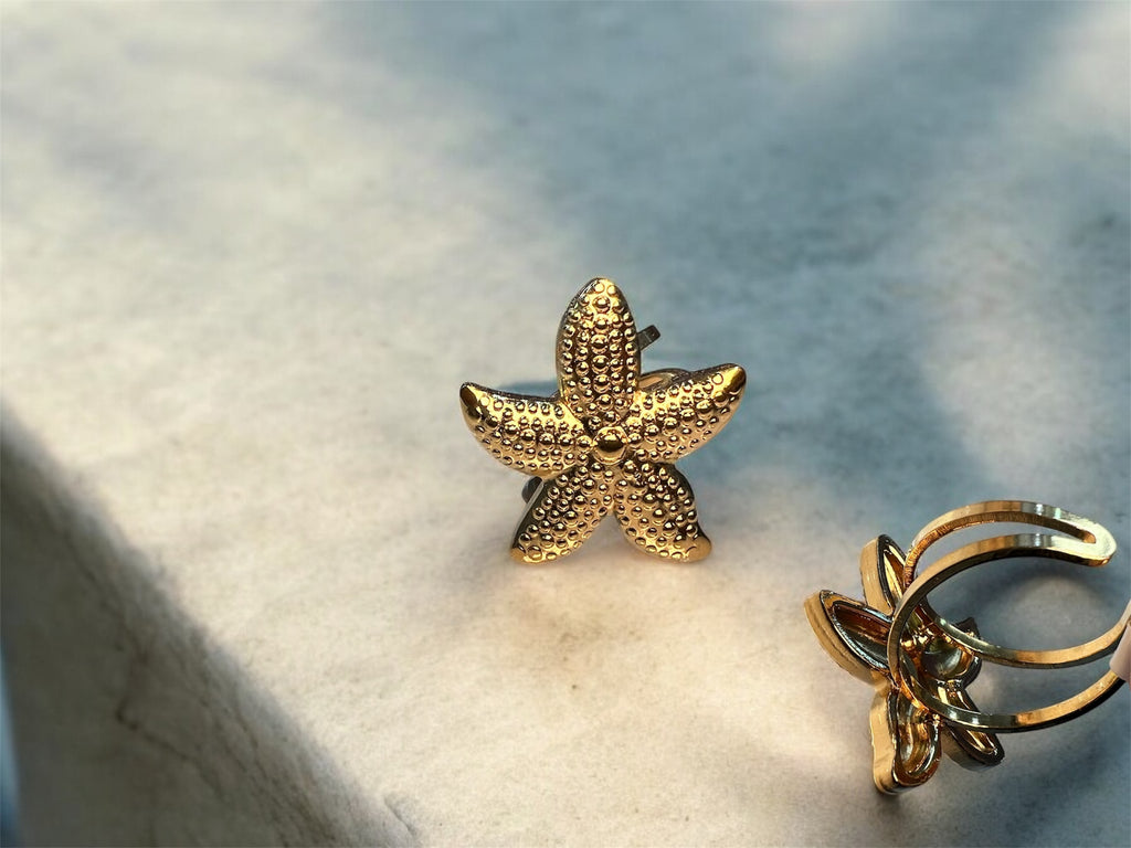 Marina star ring, adjustable, 18k gold plated. stainless steel