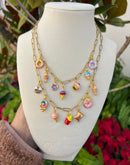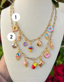 Stainless steel candy chain, 18k gold plated charms. 16 inches