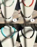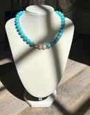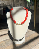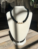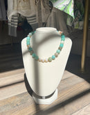 Necklace in natural stone and cultured pearl, gold-plated stainless steel hardware