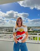 White short sleeved T-shirt with print
