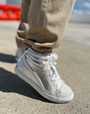 silver high cut sneakers